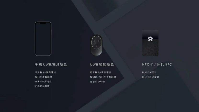 在李斌看來,手機是蔚來用户最重要的車聯設備。例如,基於蔚來第二代平台的手機超寬帶無線通信(UWB)鑰匙,將是新車型的標配。其測量精度最高可達釐米級,使用便利性遠高於NFC和藍牙鑰匙。