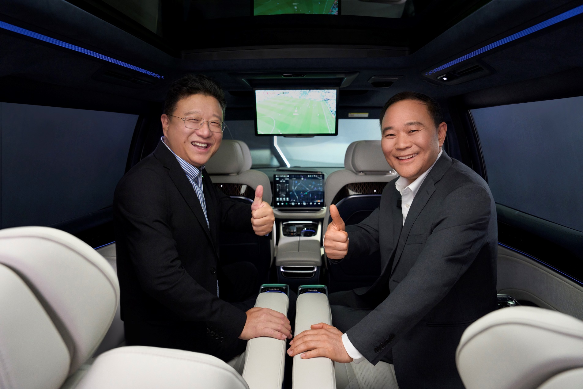 李書福和丁磊在極氪009內用車機屏看世界盃 圖片來源:極氪
