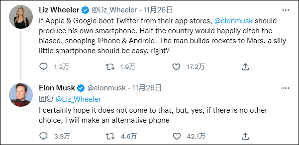 對此馬斯克直接表態稱,一旦極端情況發生,特斯拉打算推出一款自研手機。其實早在2017年,馬斯克就公開批評過iOS和安卓系統,並表示將打造自有系統來擊敗它們。
