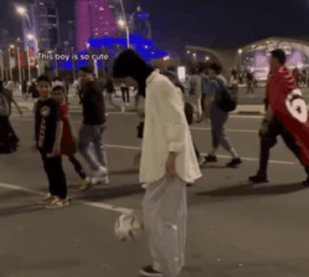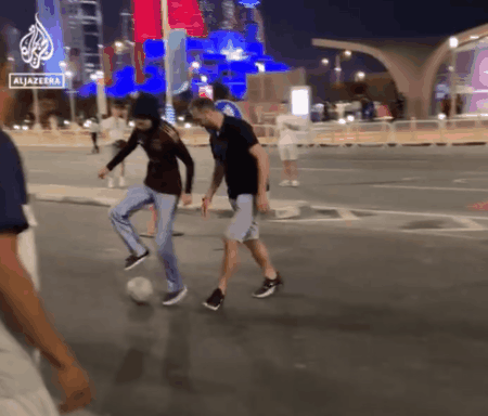 除了球技比拼外,梅米還在卡塔爾街頭打起了“擂台”,和一些來自世界各地的球迷一對一單挑。憑藉精湛的技術,她折服了一眾挑戰者和圍觀球迷。