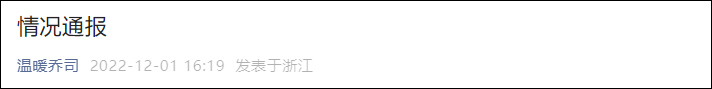 杭州市臨平區喬司街道官方微信公眾號“温暖喬司”12月1日發佈情況通報: