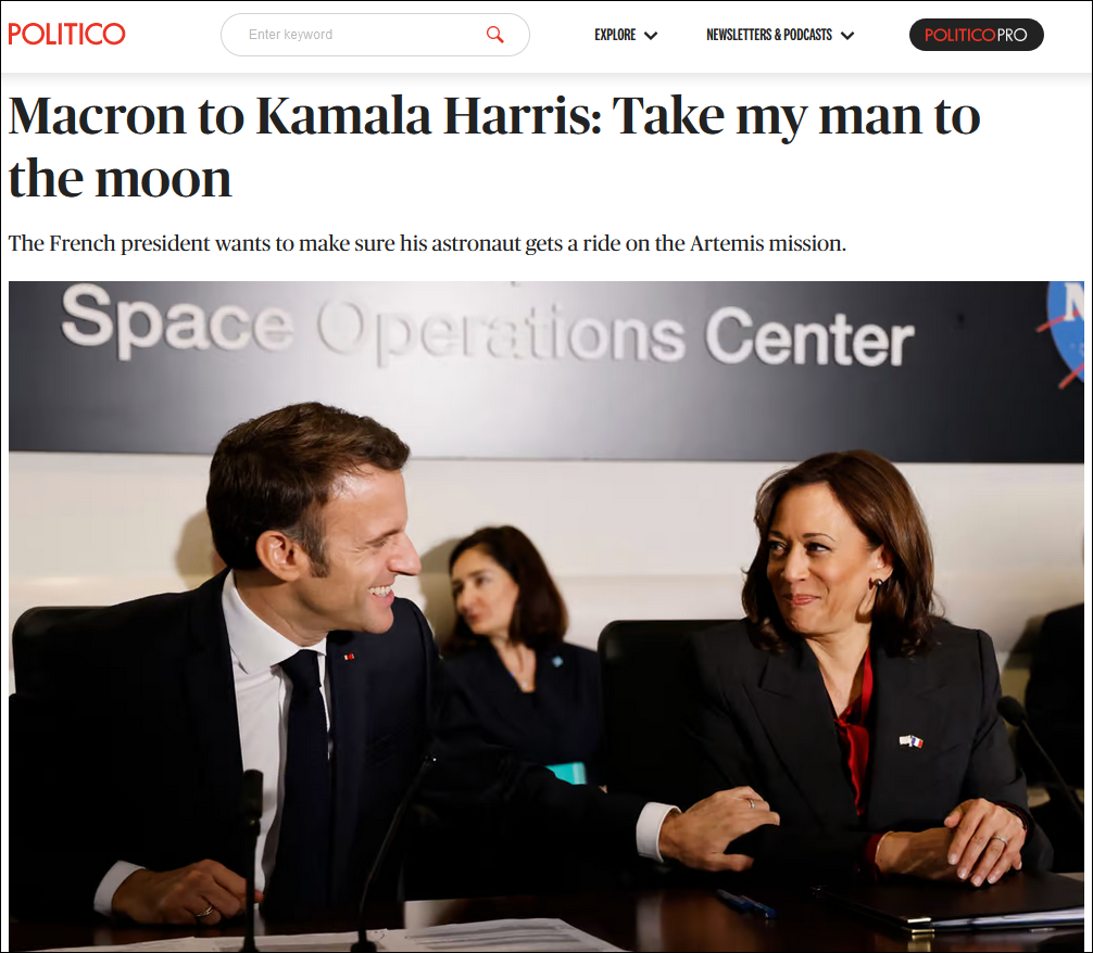 “政客新聞網”歐洲版(politico.eu)對此情景形容稱,在美國啓動重返月球的計劃之際,馬克龍想要確保“第一個登月的歐洲人來自法國”。