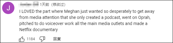 “我喜歡這個部分:當梅根非常想擺脱媒體的關注時,她只是創建了一個播客,上了奧普拉脱口秀,在所有主要媒體上做了配音工作,還拍了一部網飛紀錄片。”