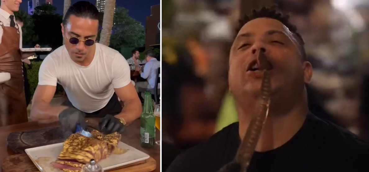 到場觀看了這場比賽的巴西傳奇前鋒、“外星人”羅納爾多請客聚餐,帶着球員們來到了多哈的高檔牛排連鎖店Nusr-Et,品嚐價值1450歐元(約合人民幣1.06萬)一份的金箔牛排,並且由餐廳的創始人土耳其廚師“撒鹽哥”努斯雷特·戈克切親自接待。