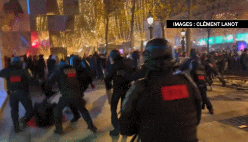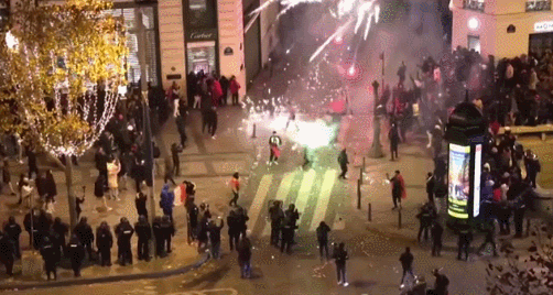 據路透社11日報道,在摩洛哥和葡萄牙的比賽結束後不久,數千名摩洛哥球迷就湧入了法國巴黎著名的香榭麗舍大道。在有大批警察被部署的情況下,他們高呼口號、揮舞旗幟、鳴笛,歡慶球隊的勝利。待到法國隊戰勝英格蘭隊後,更多的球迷加入到狂歡人羣中。