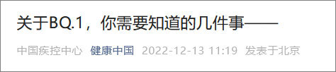 微信公眾號“健康中國”12月13日發佈文章《關於BQ.1,你需要知道的幾件事——》,內容如下: