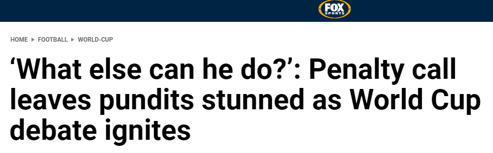 綜合“Bolavip”美國版和美國福克斯體育頻道等報道,賽後,莫德里奇指責主裁達尼埃萊·奧薩託(Daniele Orsato)“是個災難”。克羅地亞主帥達利奇稱該判罰有點“令人懷疑”,“我不會説我們反對裁判,但(阿根廷)第一個進球將比賽帶向了另一個方向”,但他也坦言沒什麼可抱怨,克羅地亞隊理應接受失敗,並稱讚了阿根廷隊的表現。