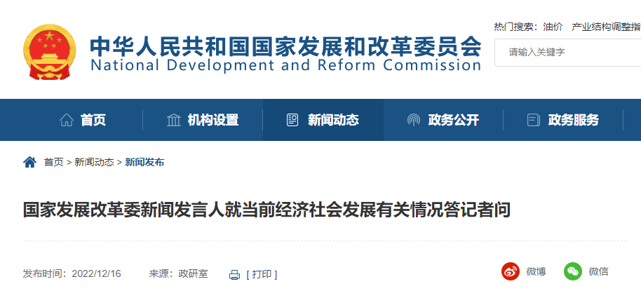 國家發展改革委網站12月16日消息,國家發展改革委新聞發言人就當前經濟社會發展有關情況答記者問。