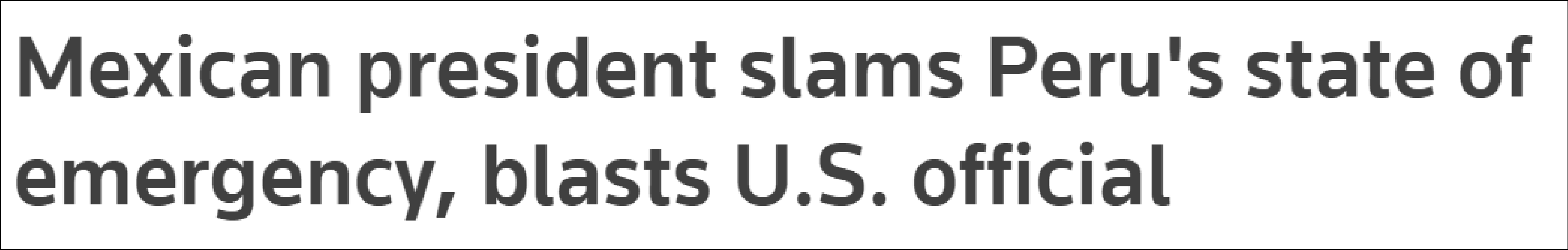 墨西哥總統批評秘魯進入緊急狀態,抨擊美國駐秘魯大使“傲慢”