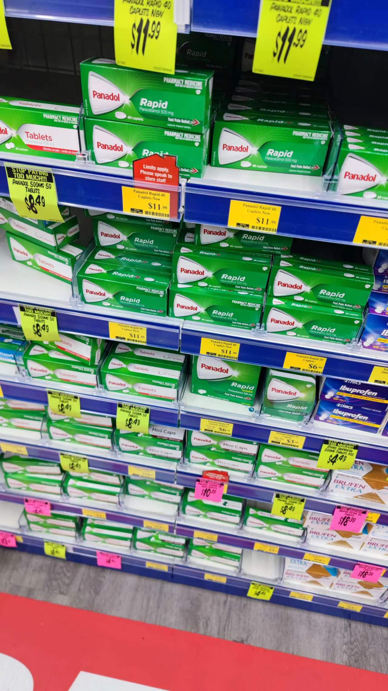 “這個價格和平時相比沒有太大的變化,一些產品還有特價,比如電子體温計,買兩只可以打折,大概在14.99新西蘭幣。Panadol 50顆大概在8.49新西蘭元(人民幣37元),Brufen布洛芬還有一些折扣。”老何表示,目前新西蘭當地藥店還沒有出現缺貨的現象,但聽澳洲的朋友説退燒藥已經出現緊缺,部分藥店出現了限購,當地華人最近在藥房跟藥劑師得知,已經收到文件稱不能郵寄Panadol回國內。