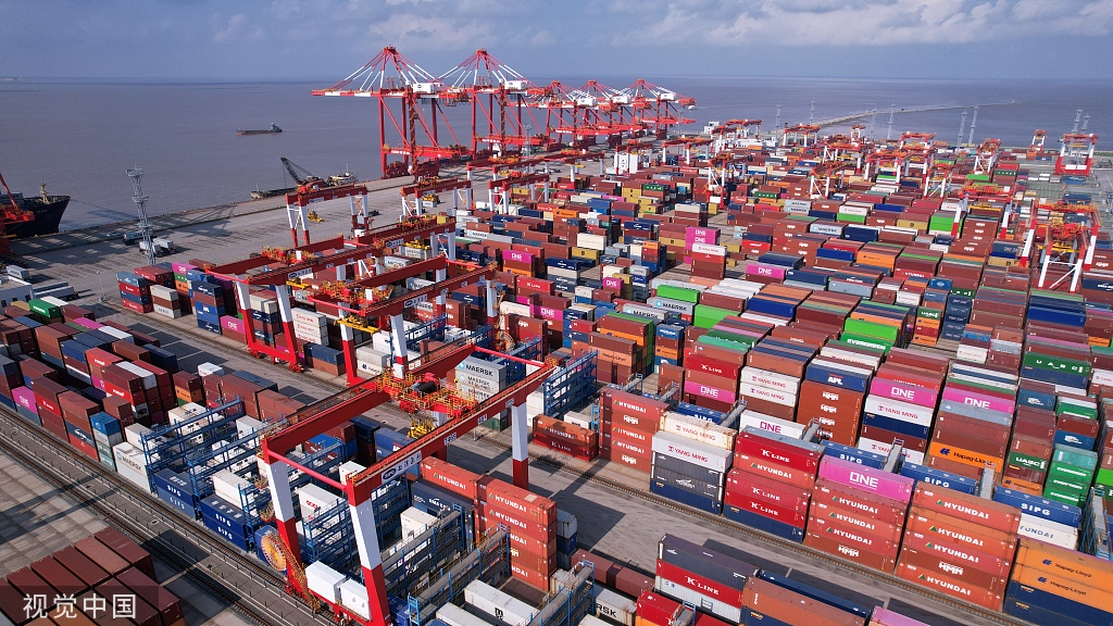 2022年9月11日,上海洋山深水港自動化碼頭一派繁忙 圖源:視覺中國
