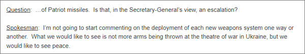 聯合國秘書長發言人:不希望看到更多武器運至烏克蘭