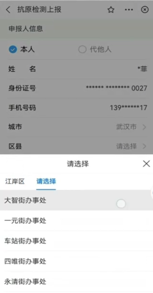 **2.**自動生成申報人信息,選擇所在城市、區縣、街道、社區,填寫詳細地址。