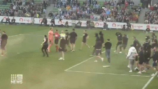 澳大利亞足球聯賽發生嚴重球迷騷亂,守門員在球場內遭襲受傷