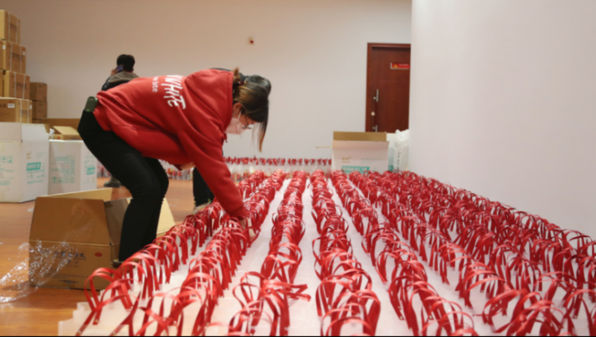 12月18日,工作人員準備“健康防疫包”。“津雲”圖