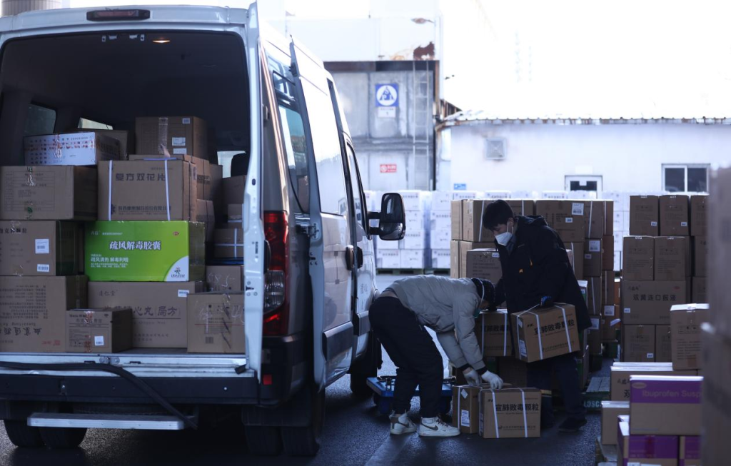 12月1日至16日,華潤醫藥配送770萬盒抗疫藥品(含庫存)到北京近300家二三級醫療機構、2200餘家社區中心站醫務室等基層醫療和3000餘家零售藥店。曹子豪攝