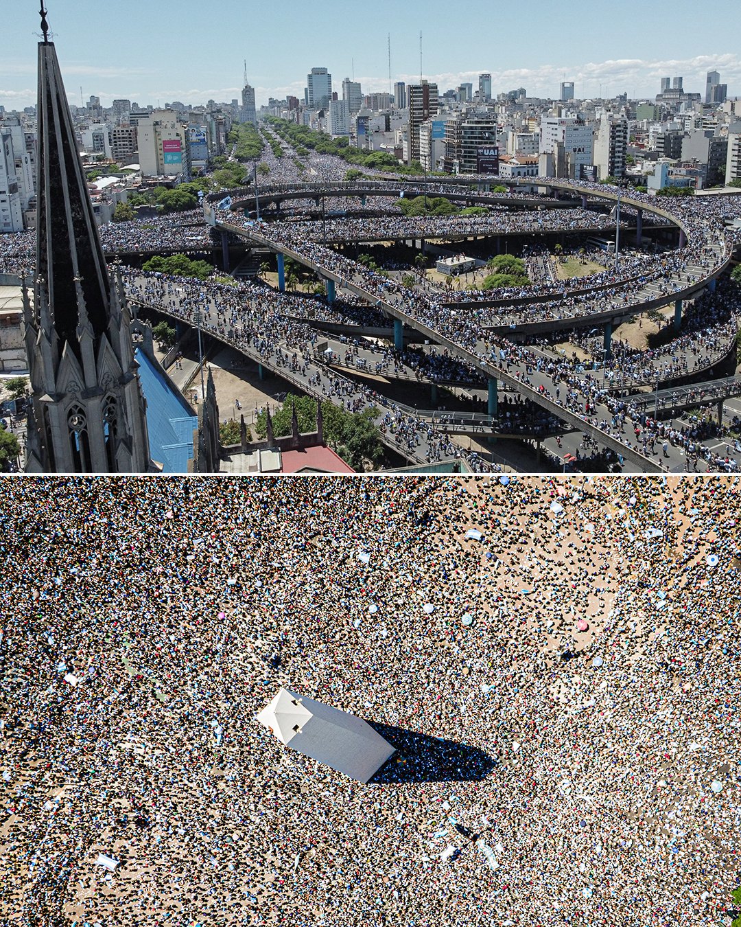 另據阿根廷《布宜諾斯艾利斯時報》20日報道,有媒體估計當天有多達500萬人走上街頭慶祝,五月廣場和方尖碑都擠滿了人。球迷們在首都營造了一種狂歡的氣氛,但由於人數太多,導致載着球員和教練組的敞篷大巴有時甚至無法前進。