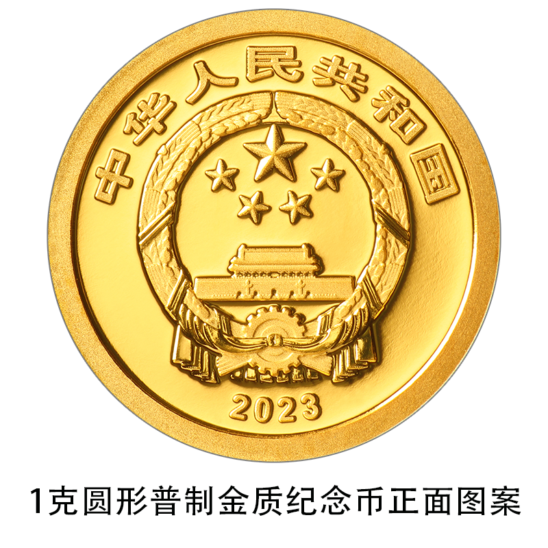 該套金銀紀念幣正面圖案均為中華人民共和國國徽,並刊國名、年號“2023”。