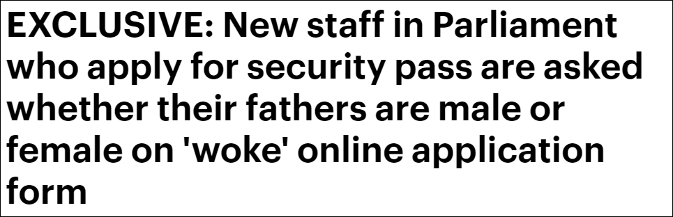 “填寫議會安全審查表格時被問及我生父的性別,這太莫名其妙了。”一位不得不填寫表格的工作人員説道,“問這個問題怎麼可能有意義?這太荒謬了。”