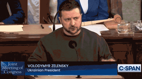 澤連斯基在當天的演講中感謝美國國會對烏克蘭提供軍事援助,強調烏克蘭與美國之間的盟友關係。他宣佈烏克蘭不會在俄烏衝突中投降,並希望獲得更多軍事援助。