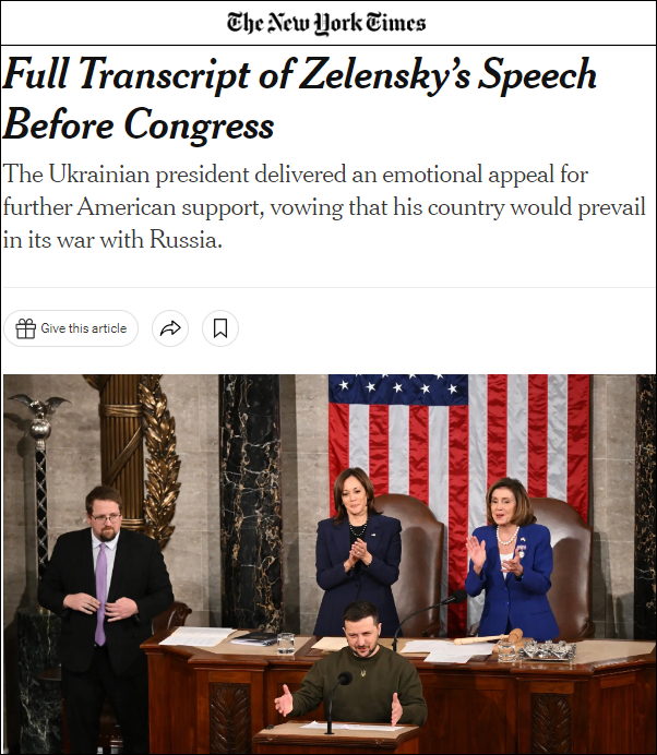 《紐約時報》稱,澤連斯基用“斷斷續續但有力的”英語作了番慷慨激昂的演講,並在請求新的援助時誓言烏克蘭要取得勝利。