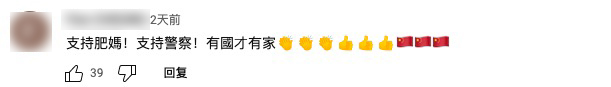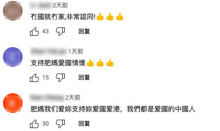對於肥媽此番愛國愛港的表態,香港網友紛紛表示支持。他們在相關視頻下留言:“支持肥媽,支持警察,有國才有家!”