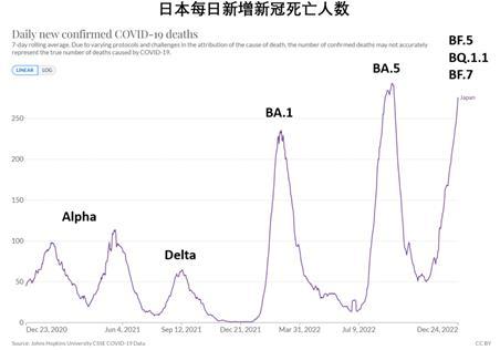 他介紹,在美國、英國、日本等國家,奧密克戎已經造成極大的死亡和重症負擔。例如,在英國,奧密克戎BA.1造成的總死亡人數與Delta相當,雖然從BA.1→BA.2→BA.5,死亡峯值呈現下降趨勢,但累計的死亡總數並沒有大幅度下降。而日本今冬疫情造成的重症人數和死亡人數已逼近歷史記錄且尚未出現下降趨勢。