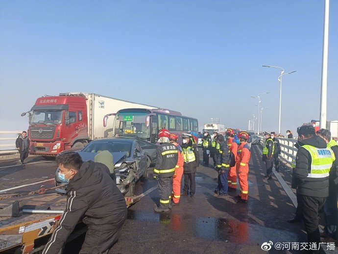 據@河南交通廣播 消息,12月28日早上07:40許,因大霧、團霧影響,鄭新黃河大橋北向南方向發生多車連環相撞交通事故。河南廣播電視台交通事業部記者核實瞭解到,消防、急救、交警正在現場緊急處理,現場救援人員初步統計涉及車輛200多輛,傷者已送往醫院進行救治。目前大橋雙向車道實施封閉管理。截止10點55分,道路事故救援已經拖離4台車輛,能動的車輛正在陸續駛離事故現場,救援工作還在緊張有序地開展,建議大家繞行官渡黃河大橋。