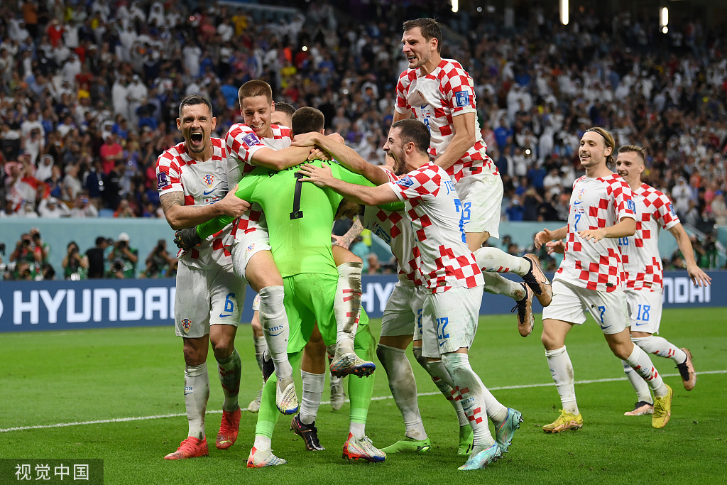 另一支讓人印象深刻的隊伍,毫無疑問是由“魔笛”領銜的克羅地亞隊。2018年獲得亞軍後,球隊“黃金一代”多名球員離開,隊伍稍顯青黃不接。但沒想到4年前克羅地亞隊的“跑不死精神”,延續到了4年後。以37歲莫德里奇為首的多元老將在比賽中用不惜體能的奔跑彌補陣容上的短板。在小組賽,球隊主帥達利奇一共就用了13人輪換,球員體能消耗之大可想而知。30歲的布羅佐維奇更是在與日本隊的16強賽中跑出了16.7公里的單場歷史紀錄。本屆比賽,“格子軍團”又連續兩次打到點球大戰,最終拖着疲憊不堪的身體在三、四名決賽中戰勝摩洛哥。老球員出色地將球隊的精神屬性傳遞給了年輕的下一代,莫德里奇在回國之後的慶典活動中表示,他相信這支球隊未來會給球迷帶來一座冠軍金盃。