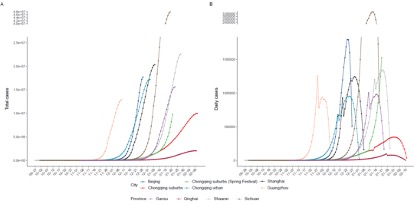 然而,基於重慶市主城區和郊區數據的數學模擬分析,提示疫情峯值在郊區有所延後,且其感染峯值將在春運期間因疫情擴散加速而顯著增強。