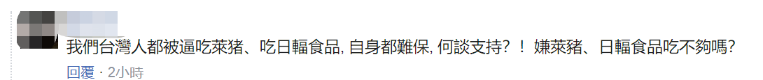 然而,更讓網友不滿的是台灣民眾當下的處境:“民進詐騙黨對台灣被美國逼吃萊豬、企業被逼交出商業機密,絲毫不敢吭聲,可以説完全無作為,還無恥、無自尊地跪舔,現在還奢談幫助立陶宛這樣夜郎自大的國家。”“我們台灣人都自身難保,何談支持立陶宛?還嫌萊豬、日本輻射食品吃不夠嗎?”