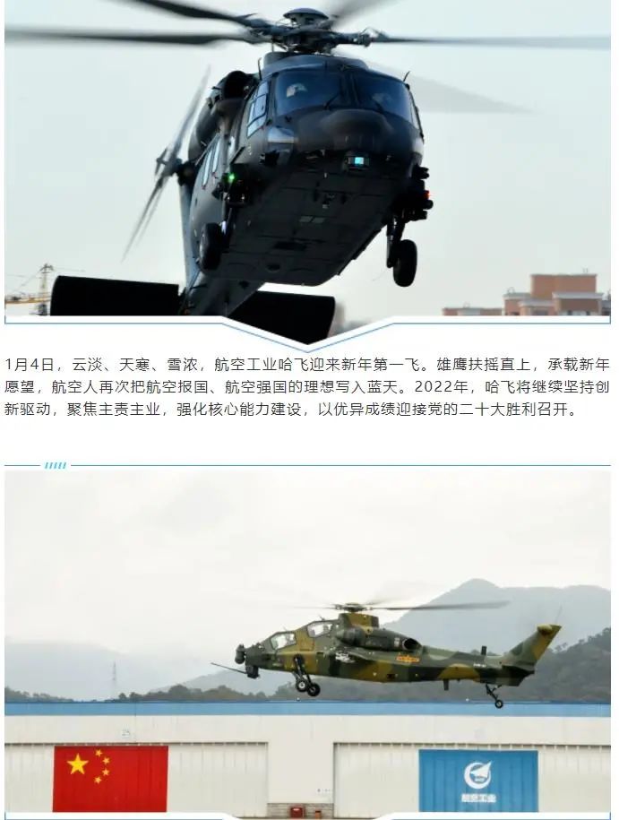 除了固定翼飛機的新年“第一飛”,直升機型號的最新消息也有公佈。從公佈的畫面來看應該是一架武直十、一架直-20。