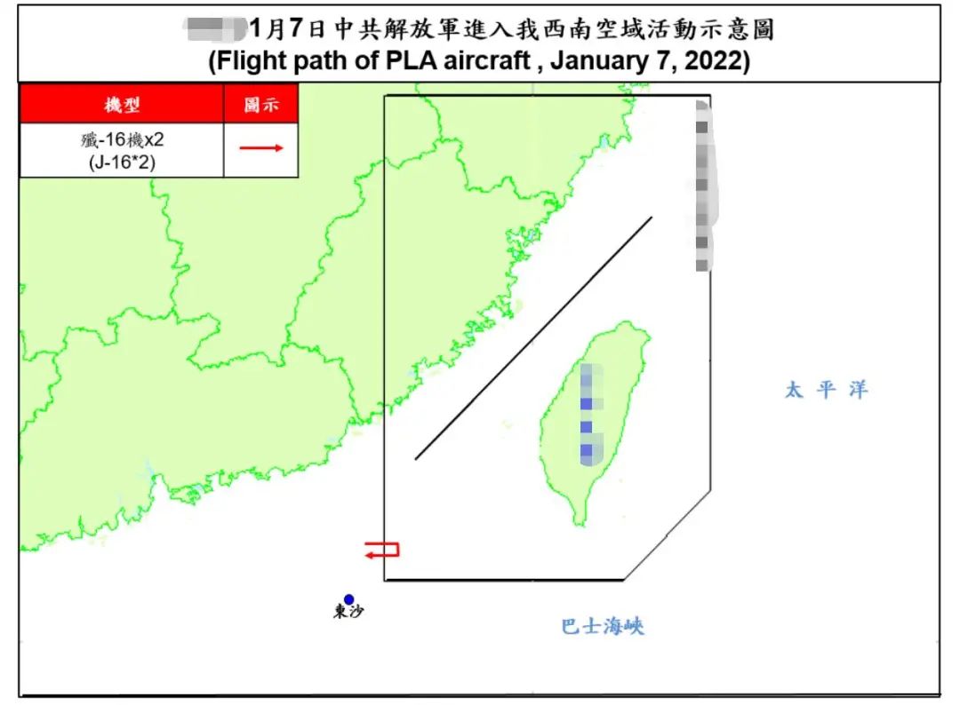 台媒稱,台空軍7日再度發佈解放軍軍機動態,2架殲-16當天晚間“侵擾”台灣西南防空識別區(ADIZ),台空軍派遣空中巡邏兵力應對、廣播驅離、防空導彈追蹤監控。