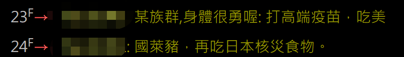 “打高端疫苗,吃美國萊豬,再吃日本核災食物。”