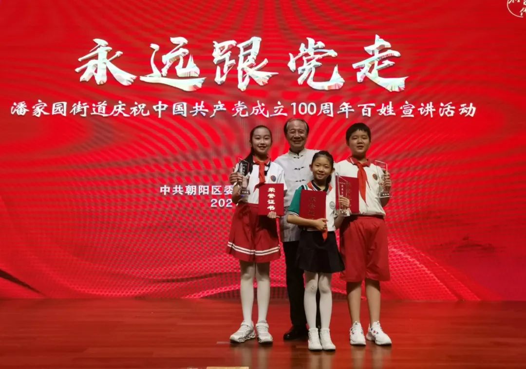塘萍和孩子們一起參加慶祝建黨百年的宣講活動。受訪者供圖