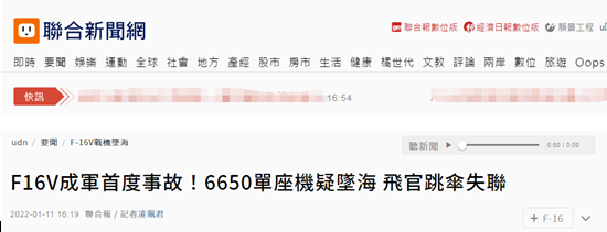 台媒:台軍今天墜機事件是F-16V戰機成軍後首次事故!