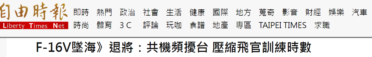 報道稱,台空軍昨日失事墜海的F-16V戰機,曾出現在台空軍2018年5月發佈台西南“防空識別區監控共機轟-6”照片中,當時這架戰機尚未構改,飛行員是資深有經驗的,並非目前仍是學員的陳奕。張延廷宣稱,陳奕自2020年3月開始F-16換裝訓練至今,飛行時數實在太少,僅為正常情況下的1/3,“但以當前台海緊張情勢,自是戰備優先,訓練的任務就會受到影響”。