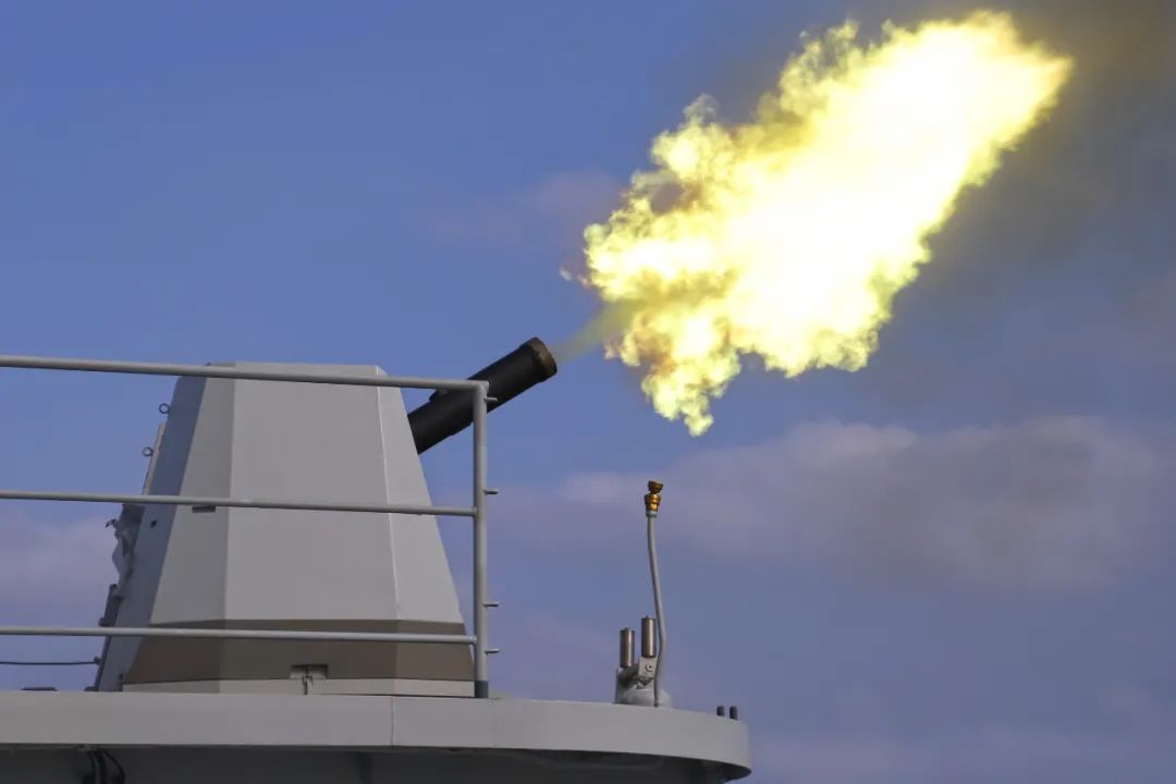 接到“敵情”通報後,艦艇迅速佔領射擊陣位,各戰位協同組織抗擊。隨着射擊指揮員果斷下令,一陣震耳欲聾的炮聲響起。