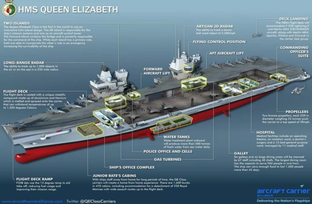 “伊麗莎白女王”級航母裝備示意圖(圖源:中國艦船研究)