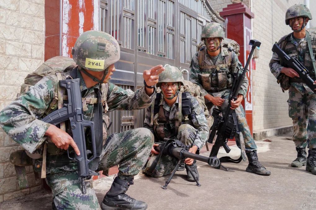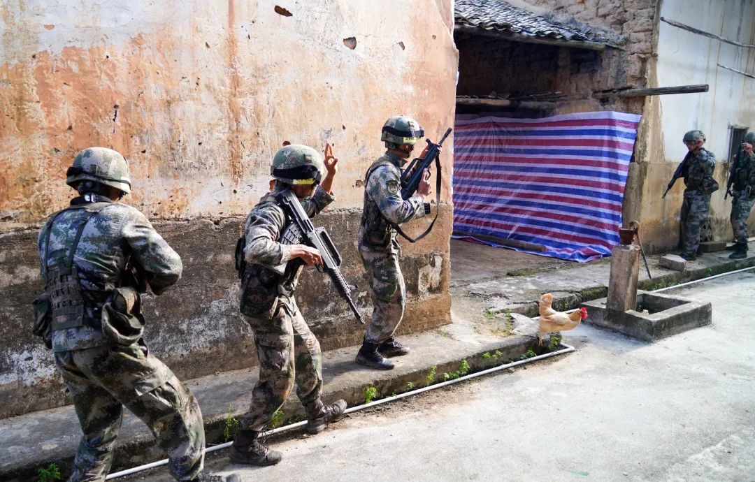 伴隨着小隊長一聲令下,重火器手對下車之“敵”進行火力打擊,近戰突擊組與偵察引導組迅速合力展開伏擊、掃殘、抓捕行動。