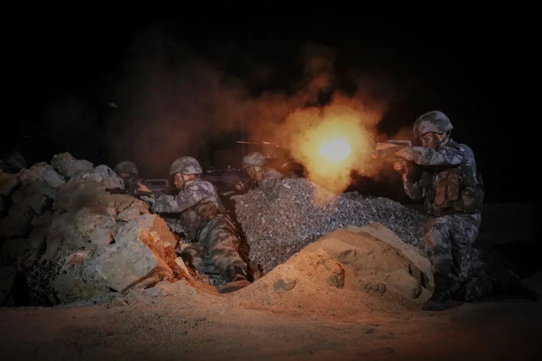 “嘭……”迅速瀰漫的爆破煙塵下,“敵”車隊首車被逼停。幾乎與爆炸同步,身披吉利服的狙擊手在數百米外精準擊中車隊尾車。