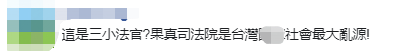還有網友質疑法官的判決,“果真‘司法院’是台灣社會最大亂源!”