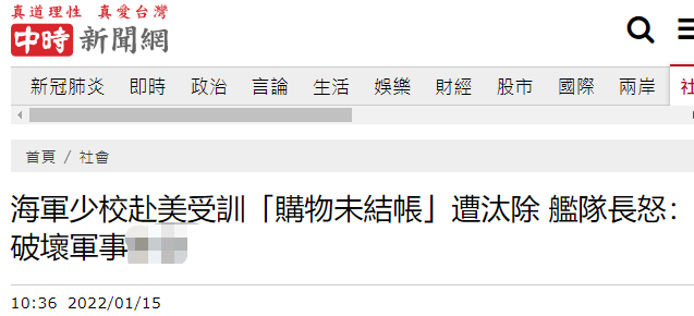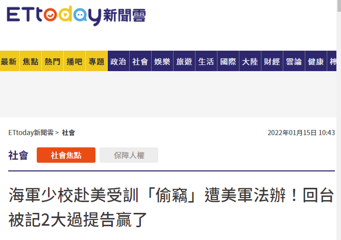 【環球網報道】據台灣“ETtoday新聞雲”15日報道,台海軍131艦隊劉姓少校輔導長,於2019年在美國受訓期間在美軍基地營站賣場偷走2張記憶卡、2條傳輸線以及1個U盤,被美軍法辦,事後更被要求提前返台。2020年,艦隊決議對其記大過2次。劉姓男子不服提起行政訴訟,法官日前審理認為,“人事評議委員會”(簡稱人評會)的程序有瑕疵,判撤銷處分。有島內網友覺得此事不可思議,“輔導長還會在美國‘偷竊’?”也有人質疑法官的判決,“果真‘司法院’是台灣社會最大亂源!”