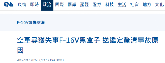 台媒:台軍方尋獲失事F-16V戰機黑匣子,成立調查委員會調查事故原因