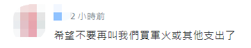 更有人表示,“希望不要再叫我們買軍火或其他支出了。”