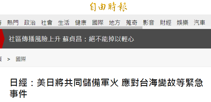 《自由時報》也炒作稱,美日此舉是“應對台海變故等緊急事件”。