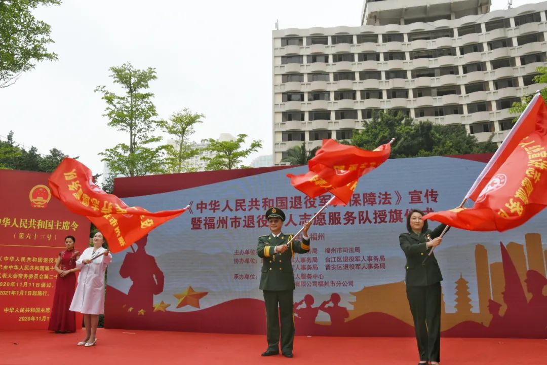 2021年4月,福州市舉辦《中華人民共和國退役軍人保障法》宣傳暨福州市退役軍人志願服務隊授旗儀式。