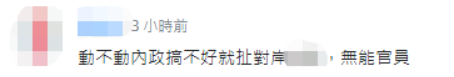 對於胡忠一的論調,一些島內網友都看不下去,在台媒評論區留言表示,“動不動內政搞不好就扯對岸,無能官員。”“就只會這一招,利用抹紅別人來推卸責任,真是太無能的‘政府’官員!”