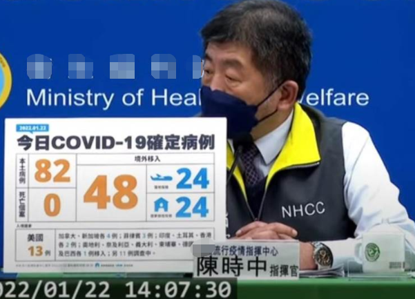 據報道,一名網友22日在網絡論壇PTT上發文稱,他在收看當天下午指揮中心記者會時發現,指揮官陳時中一開始端出的確診病例圖表上,“48例境外移入”的字體大小比“82例本土確診”還要大。