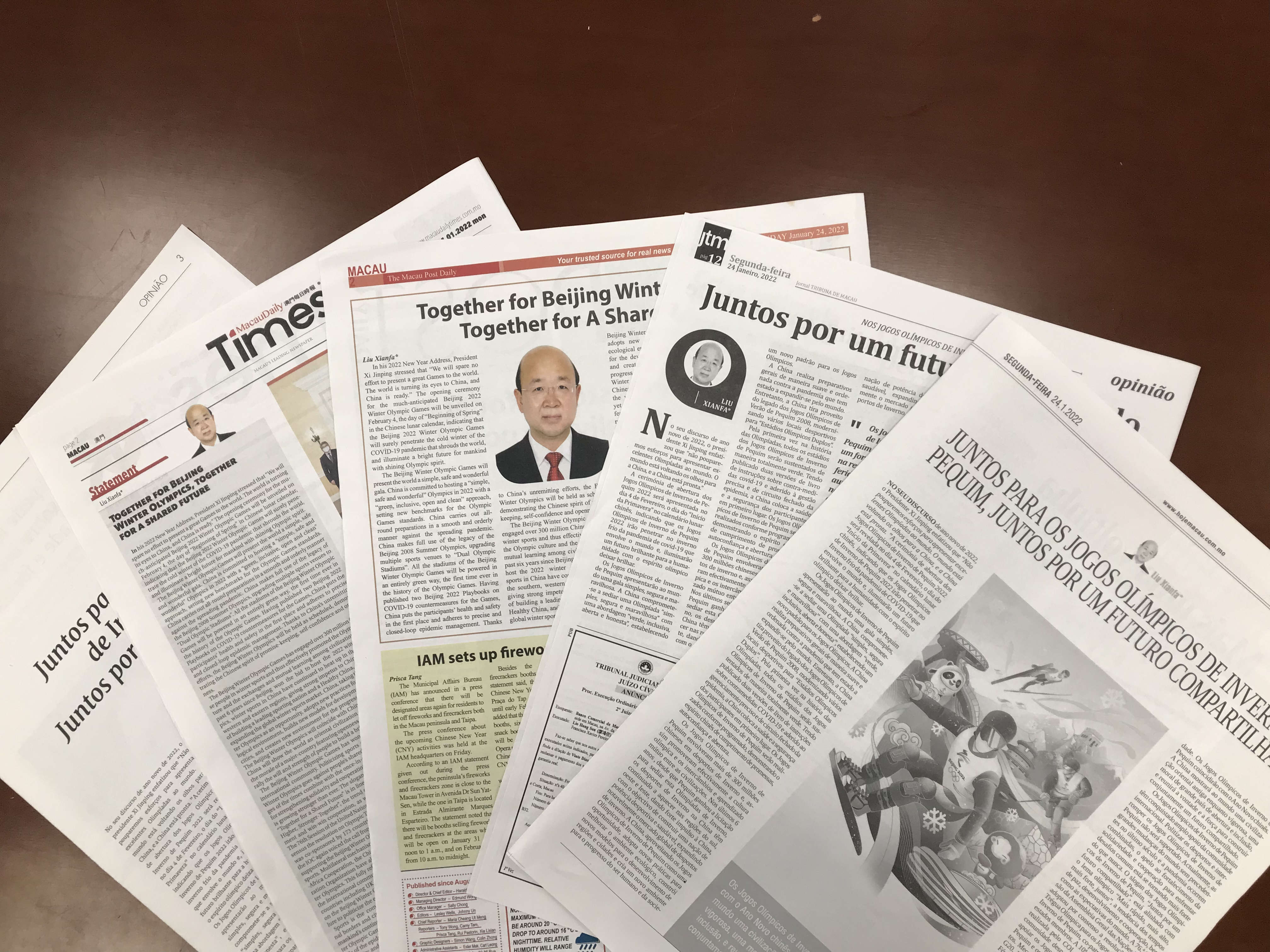 劉顯法特派員在澳門葡英文媒體發表署名文章《共襄冬奧盛舉 共創美好未來》